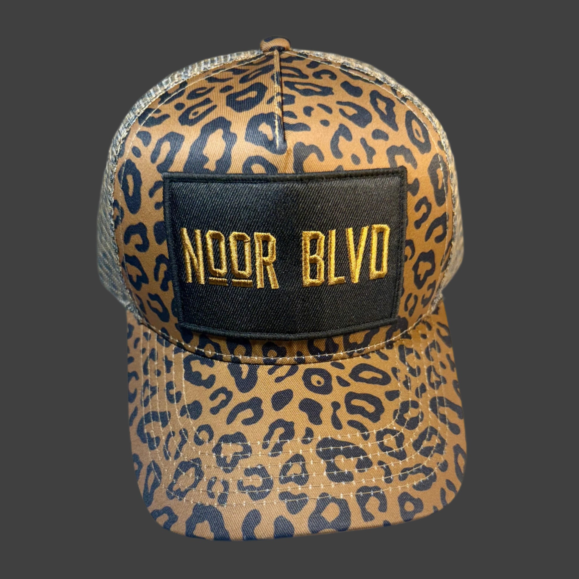 This Leopard Trucker Hat combines comfort and style, featuring a soft polyester material and a comfortable fit. The trendy design showcases black leopard prints on a white background, complemented by a white logo on a black patch on the front and an additional logo on the inner lining. Ideal for outdoor enthusiasts and individuals who enjoy fashion, this hat is a must-have.